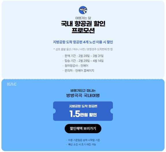지방공항 도착 항공편 4개 노선 이용 시 1만 5천 원 할인, 8000명 규모