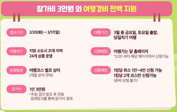 온라인 이벤트를 통한 여행 참여자 선정. 참가비 3만 원