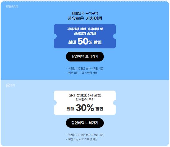 - 열차와 여행품목( 지역숙박, 입장 · 체험권, 연계차량 등)을 결합 구매 시에만 할인 (OTA 또는 여행사 상품으로 구매)