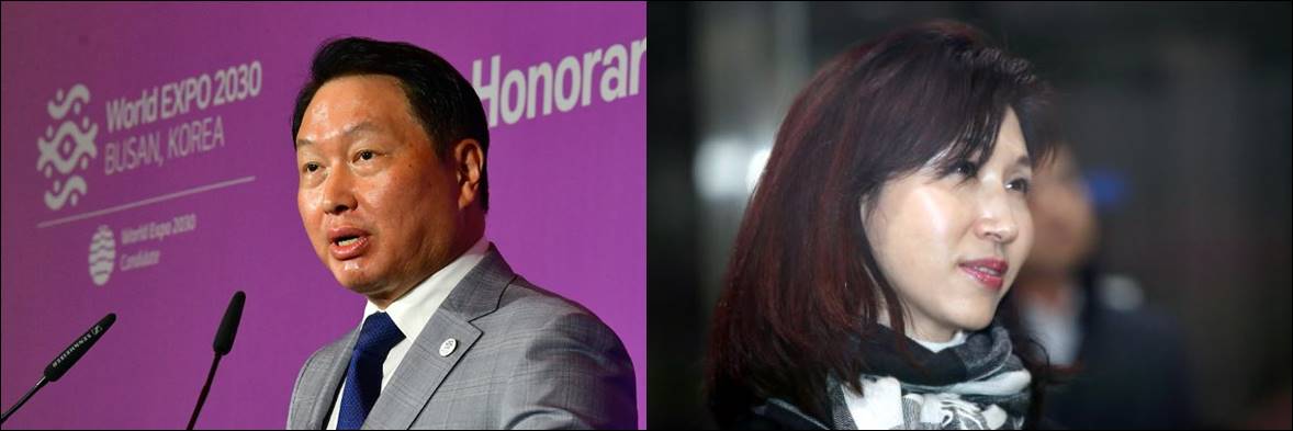 SK 최태원 회장과 노소영 아트센터 나비 관장의 이혼 항소송에서 1심의 20배에 해당되는 위자료 20억 원을 인정하고 역대 최대인 1조 3천808억 원의 재산을 노 관장에게 현금으로 분할하라는 재판